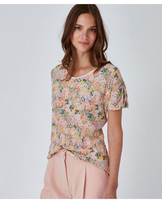 Léger, vaporeux, fluide, ce tee-shirt fleuri féminin se porte sous le soleil et fait partie des tops favoris de la saison !