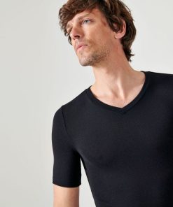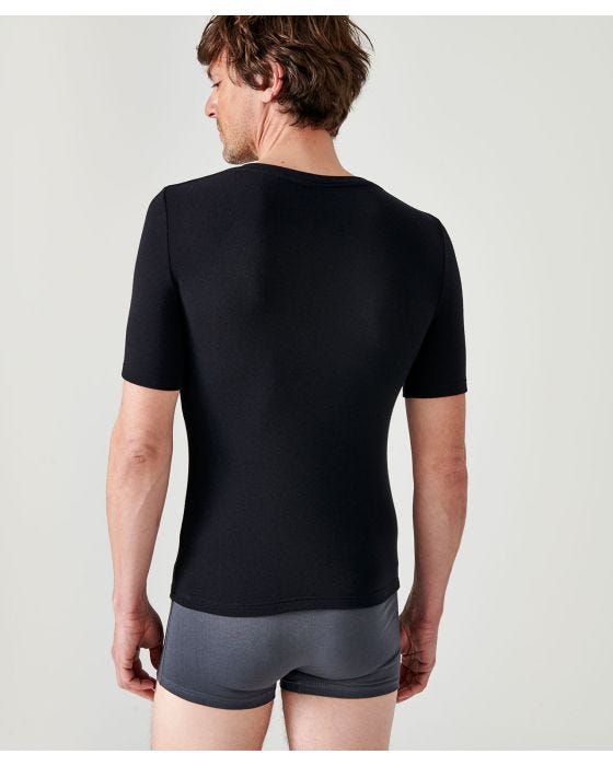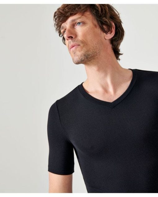 Ce T-shirt en fine côte offre une grande douceur et une chaleur optimale. Il maintient l’hydratation naturelle de la peau* grâce à son mélange de matières innovant, associé à l’élasthanne. Avec son col V, il passe inaperçu sous une chemise légèrement ouverte. En microfibre extensible, ce sous-vêtement Thermolactyl, peut se porter avec un bas de pyjama pour flâner à la maison. Biais double rapporté au col V. Longueur du t-shirt manches courtes 65 cm environ. Tours de poitrine (en cm). Passe au sèche-linge. Caleçon long coordonné vendu sur ce site. *de l’épiderme, résultats après 4 heures de port sur panel de 117 personnes (2019-2023), tous produits de la gamme Sensitive confondus. Chaleur Medium 3 : chaleur moyenne, idéale au cœur de l’hiver ! ŒKO-TEX® STANDARD 100 CQ1194/4 – IFTH.
