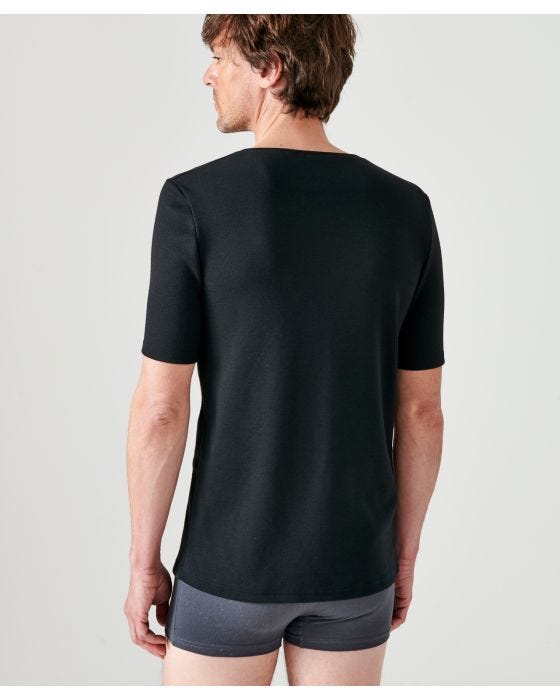 La température chute ? Optez pour ce basique incontournable dans votre dressing, réalisé dans une maille interlock souple en mélange Thermolactyl 50% polyester recyclé, 50% acrylique (sauf noir : 50% polyester (dont 45% polyester recyclé), 50% acrylique). Ce T-shirt manches courtes vous procure une chaleur optimale. C’est le modèle historique de Damart revisité : toujours aussi chaud et doux, les éclairs en moins ! Biais rapporté à l’encolure. Ce sous-vêtement se porte sous une chemise en toute discrétion grâce à son col V. Longueur du t-shirt homme 72 cm environ. Tours de poitrine (en cm). Passe au sèche-linge. Caleçon long coordonné vendu sur ce site. Chaleur Medium 3 : chaleur moyenne, idéale au cœur de l’hiver. ŒKO-TEX® STANDARD 100 CQ1194/4 – IFTH.