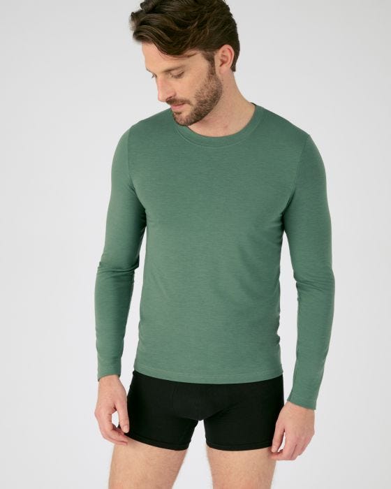 Vous en rêviez ? Damart l’a fait ! Voici son premier sous-vêtement thermorégulant, labellisé Evolutyl, aux fibres intelligentes conçues pour gérer les coups de froid comme les coups de chaud. Promesse d’un confort idéal ! Sa coupe moderne col rond avec biais double rapporté et manches longues se porte facilement dessus comme dessous. Il évacue de façon optimale l’humidité et neutralise les odeurs. On adore sa déclinaison en 4 couleurs et sa maille douce fabriquée à 61% en polyester recyclé ! Longueur de ce haut homme confortable : 66 cm environ. Retrouvez le t-shirt manches courtes et la version femme sur ce site.