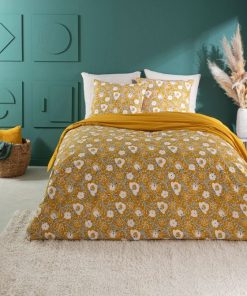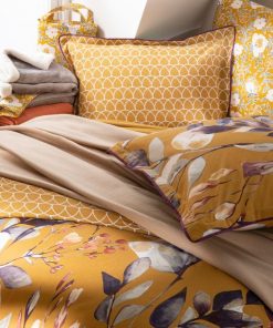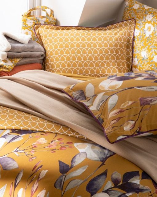 Sur un fond ocre très actuel, s’impriment fleurs et feuillages dans une belle harmonie. Ce drap plat compose avec les taies, le drap-housse et la housse de couette assortis, vendus sur ce site, une superbe parure. Ce drap imprimé, pur coton 57 fils/cm2, est traité Sanfor, technique d’apprêt mécanique qui va prérétrécir les tissus. Le traitement Sanfor permet par la suite de limiter le rétrécissement du linge et d’éviter les déformations à l’entretien. Lavable à 60°. OEKO-TEX® STANDARD 100 CQ1194/6 – IFTH.