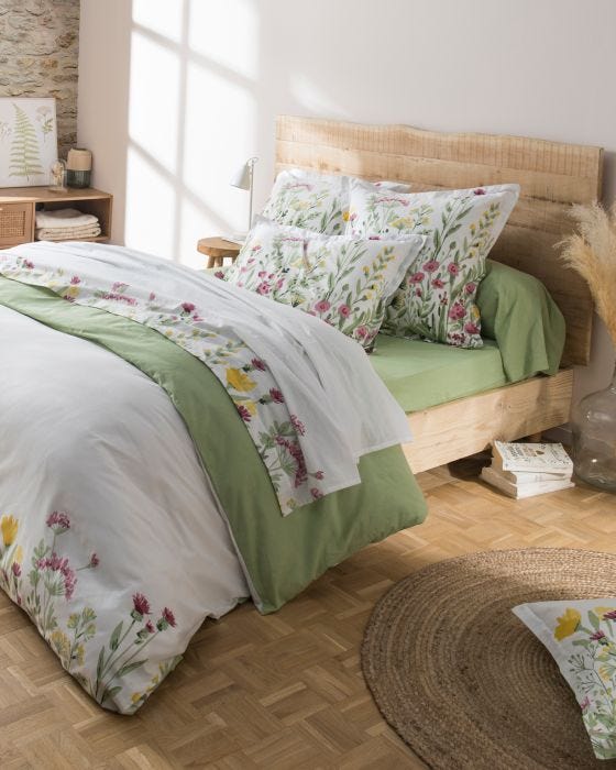 Faites entrer la poésie dans la chambre ! À vous cette housse de couette printanière dans son imprimé et de qualité dans son tissage, à coordonner à la parure Champêtre.