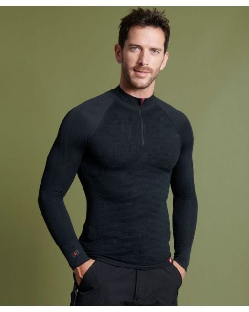 Une innovation Damart sport : un tee-shirt technique et performant à porter à même la peau pour toutes vos activités sportives intenses (ski, course, moto, etc.). Son tricotage élaboré (= body mapping*) allié à l’utilisation de fibres techniques à la capacité de réfléchir les infra-rouges du corps lui confèrent une forte capacité d’isolation thermique pour un poids réduit. Bonne évacuation de la transpiration, neutralise jusque 90% des odeurs. Maille labellisée Thermolactyl degré 5 : excellente isolation thermique par temps très froid ou en conditions humides (de -20° à -15°). Col montant zippé avec patte protège-menton. Sans coutures sauf aux emmanchures, réduction des frottements. Liberté de mouvement, coupe près du corps. Longueur du tee-shirt homme 65 cm environ. Conçu à 60% en polyester recyclé. (* cartographie du corps)